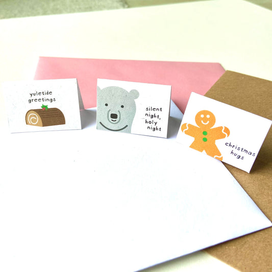 Tiny Christmas Card Set - Polar Bear/Yule Log/Gingerbread Person